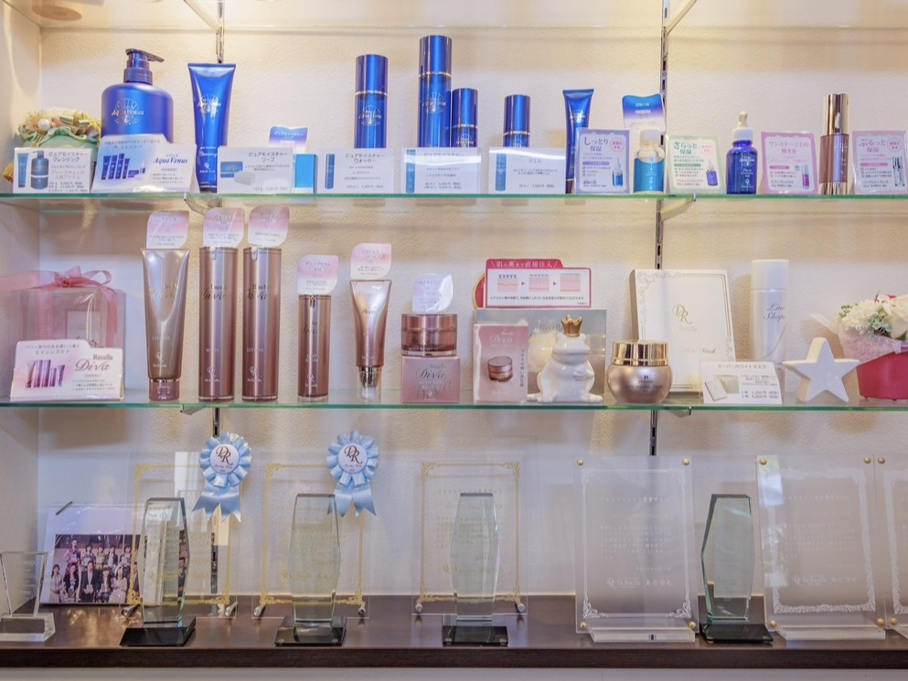 ご自由にお試しいただける日焼け止めやメイク用品もご用意しております。