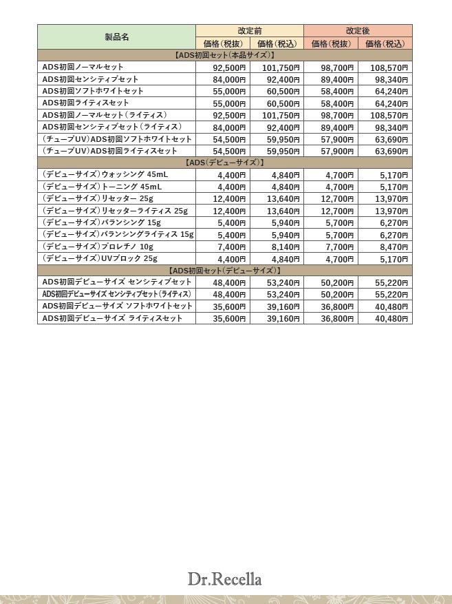 ■重要■ドクターリセラ製品 価格改定のお知らせ